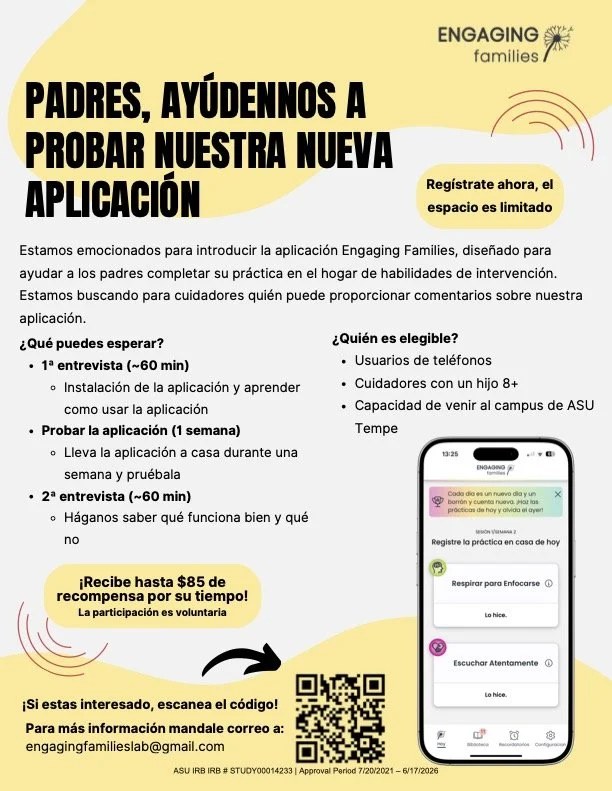 Your gift to the Engaging Families Lab helps it develop, provide, evaluate and innovate high-quality parenting interventions and engagement strategies for families navigating stressful transitions and experiences. Research activities include, but are not limited to, research on parenting interventions for substance use and mental illness prevention, app development for parenting interventions, home practice research, prevention research, and adaptations of parenting interventions for parents of children with physical disabilities.